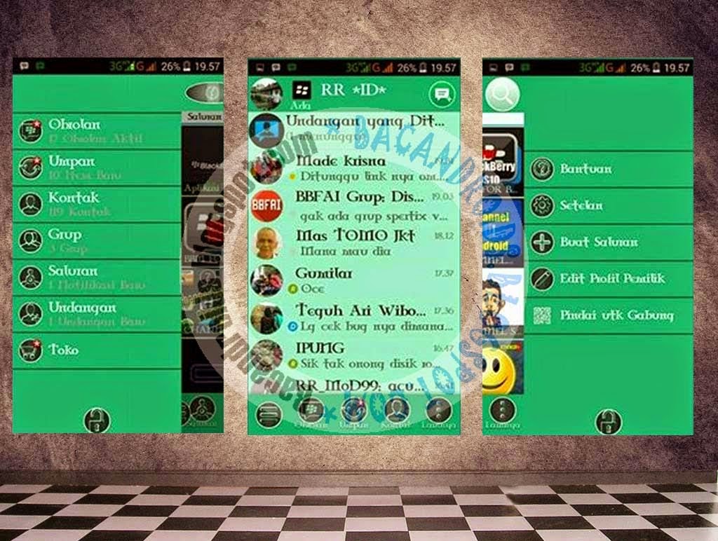BBM Mod ini saya ambil dari blog bacandroids dan sepertinya bbm mod ini hasil modif dari admin blog tersebut. demikianlah saya share bbm mod hari ini, semoga anda menyukainya.