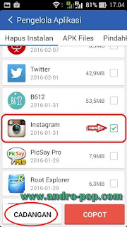 3. Dan silahkan pilih aplikasi yang ingin di backup, contoh Instagram