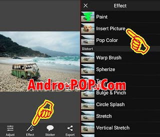 2. Tap menu Effect -> Insert Picture lalu cari foto kamu yang ingin dibuat kecil