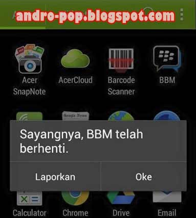 Andro-POP – Terkadang kita merasa jengkel di tengah sedang enak – enaknya chatting dengan teman-teman BBM, tiba – tiba app tersebut error alias keluar sejenis pengumuman bahwa “Aplikasi BBM telah berhenti” alias Force Stop.